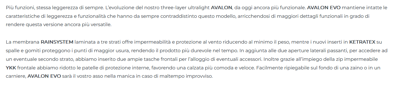 Guscio impermeabile Trabaldo mod AVALON EVO